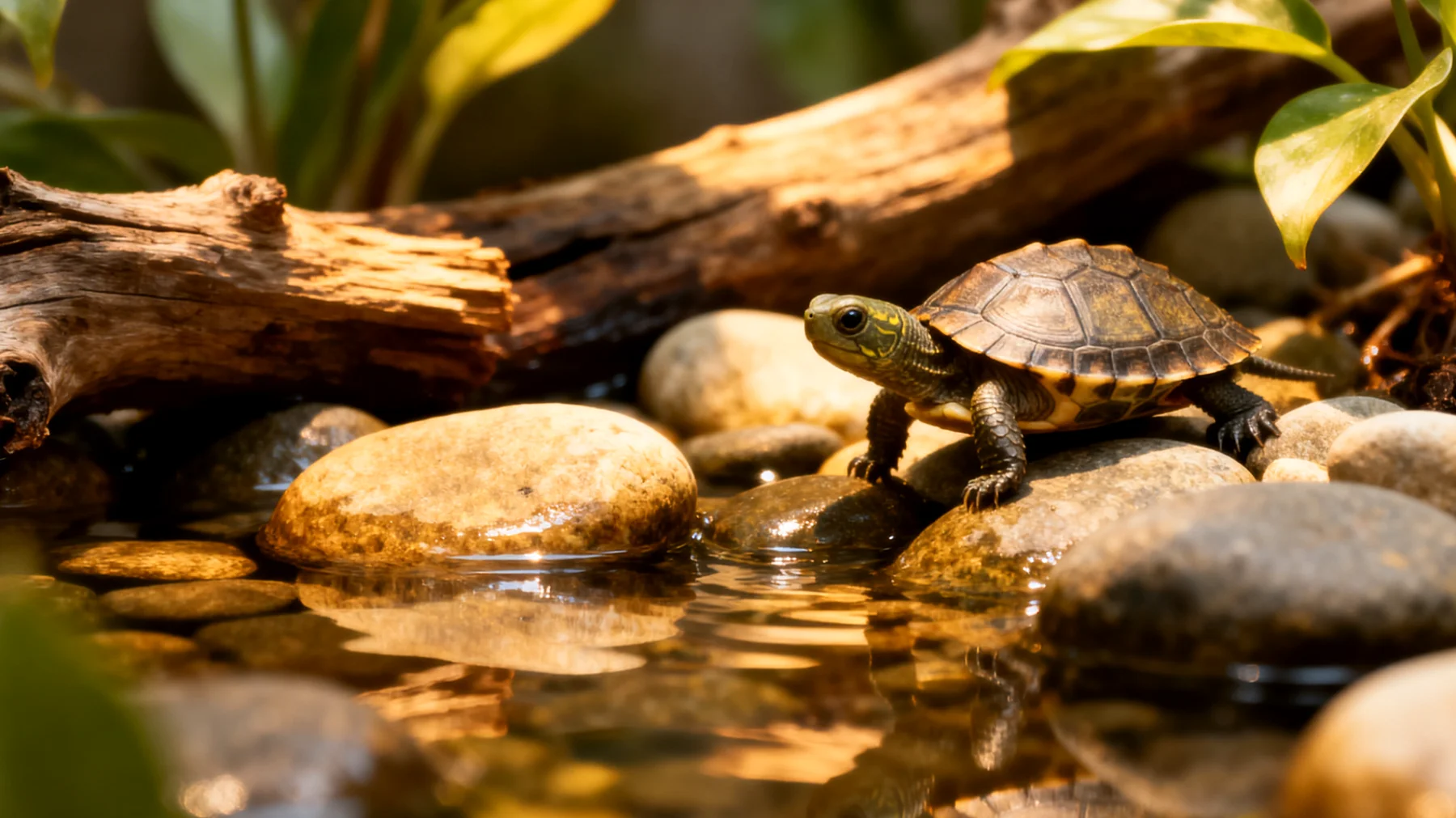 Ein stimulierendes Umfeld für junge Schildkröten besteht aus verschiedenen Ebenen, Texturen und Versteckmöglichkeiten. Hügel aus Erde oder Sand laden zum Klettern ein und trainieren die Muskulatur. Flache Steine unterschiedlicher Größe schaffen interessante Wege und Barrieren, die überwunden werden wollen. Wurzeln und umgefallene Äste – natürlich ungiftig und gut gesäubert – bieten Klettergelegenheiten und simulieren die natürliche Umgebung.